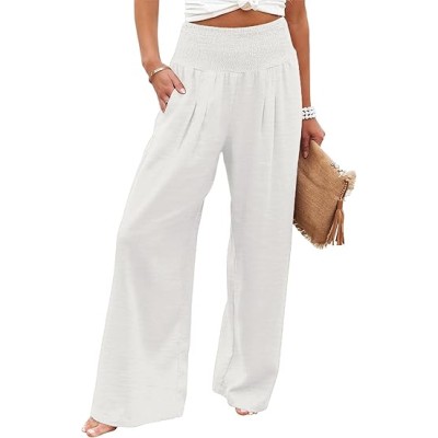 Womens High Waisted Wide Leg Palazzo Pants Casual Lounge Boho Flowy Pants with Pockets