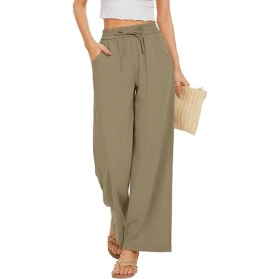 Womens Casual Wide Leg Pants Cotton Long Trousers High Wasit Loose Palazzo Pants with Pockets