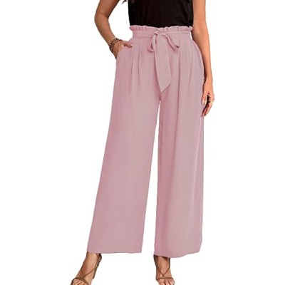 Women's Wide Leg Pants Tie Knot Work Pant Business Casual Long Lounge Trousers with Pockets