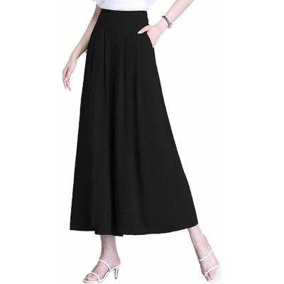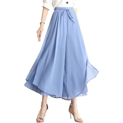 Women's Capris Crop Chiffon Pants Summer Beach Vacation Culottes Casual Dress Wide Leg Pants