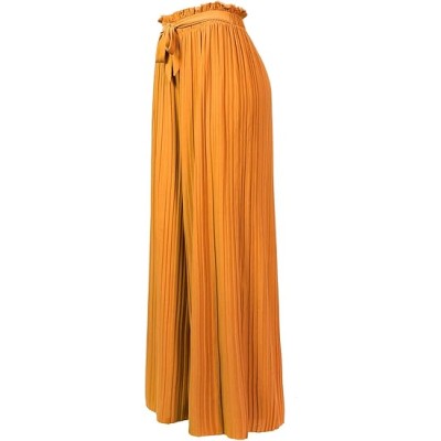 Women's Ribbon Tie Chiffon Loose Pleated Wide Leg Palazzo Pants