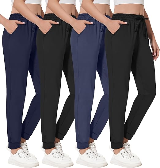 4 Pack Womens Joggers with Pockets-Lightweight Quick Dry Sweatpants Athletic Yoga Running Lounge Tapered Pants
