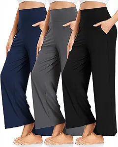 3 Pack Women's Wide Leg Yoga Pants Comfy Loose Sweatpants High Waisted Lounge Casual Pants with Pockets