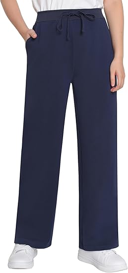 Women's Petite Wide Leg Sweatpants Cotton Pants with Pockets