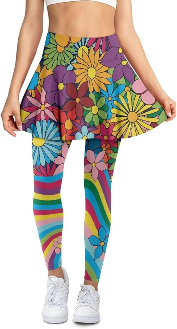 Womens Yoga Leggings with Skirts Tennis Skirts with Leggings Athletic Skirted Leggings