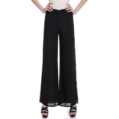 Women's Wide Leg Chiffon Dress Pant High Waist Flared Palazzo Flowy Layered Boho Long Trousers