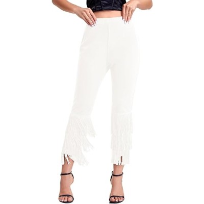 Women's Fringe Hem Elastic High Waisted Skinny Leggings Workout Yoga Pants