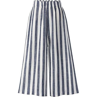 Women's Casual Striped High-Waist Wide-Leg Cotton Lightweight Palazzo Capri Culotte Pants