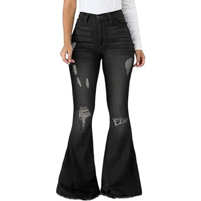 Women's Bell Bottom Jeans Elastic Waist Ripped Flared Jeans Denim Bell Bottom Plus Size Pants