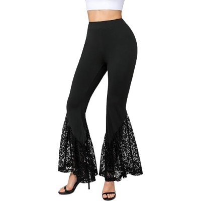Woman Lace High Waisted Flare Leggings Pants Black Sexy Disco 70s